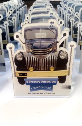 Troféu Carros Antigos em acrílico impresso.