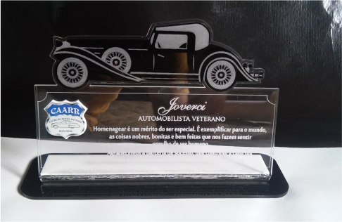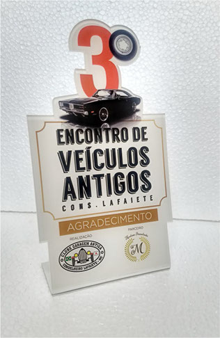 Troféu Encontro de Carros Antigos em acrílico impresso.