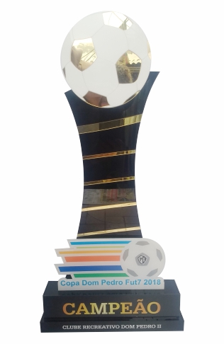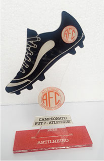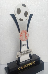Troféus para Futebol em acrílico, com base caixa. Detalhes impressos e em relevo.