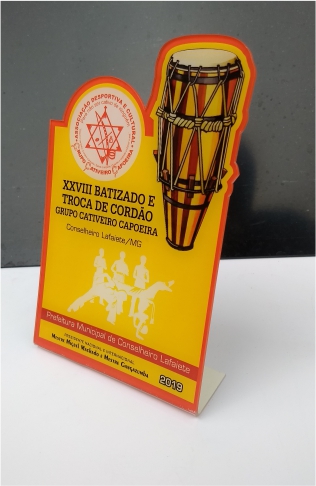 Display Capoeira, em acrílico impresso.