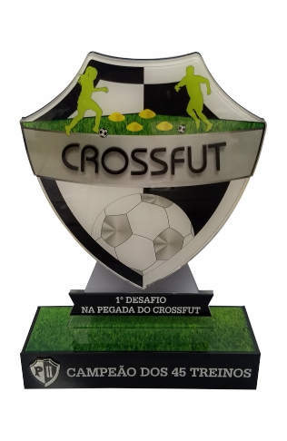 Troféu CrossFut em acrílico, com base caixa.