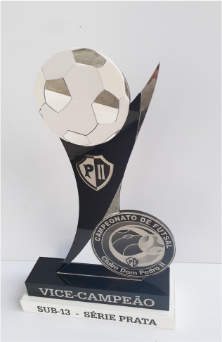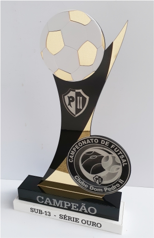 Troféu Futsal em acrílico com detalhes em relevo. Bases caixas