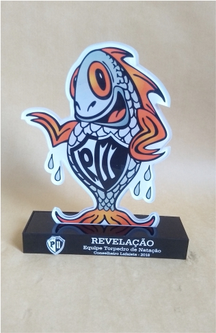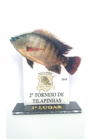 Troféu Tilapinha em acrílico, com base tripla.