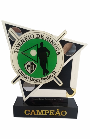 Troféu para Sinuca em acrílico impresso, com base caixa.