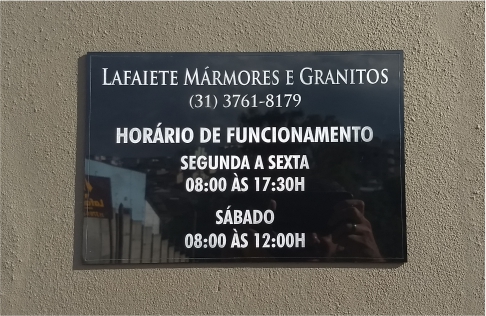 Placa de Horário de Funcionamento, em acrílico preto com gravação a laser.