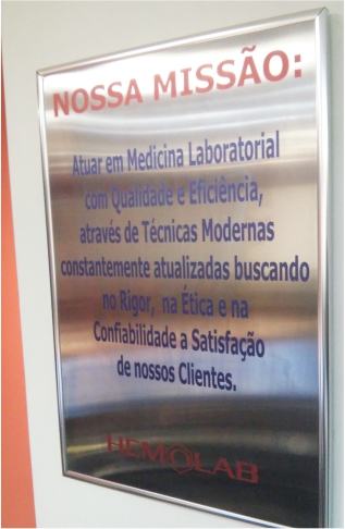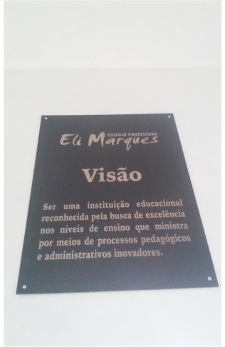 Placa Missão , Visão e Valores, em acrílico com gravação a laser e relevo.