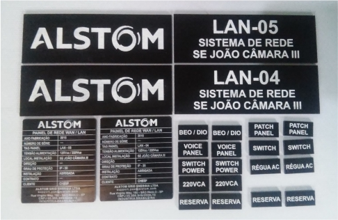 Placas para Painéis Elétricos com gravação a laser e impressão UV.