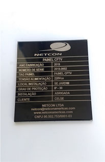 Placa Identificação de Painel, em ACM Preto com gravação a laser.