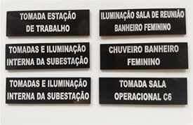Placas identificadoras de painéis em alumínio e acrilico.