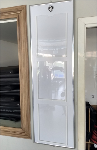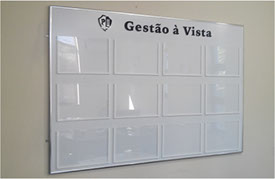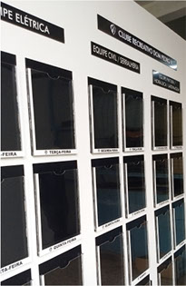Painel de Aço Escovado com placas de acrílico imantadas.