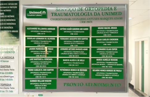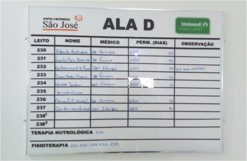 Quadro Identificação de Pacientes, em acrílico com detalhes em relevo.