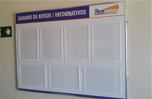 Quadro de Avisos para Concreteira, com porta folhas A4 de acrílico.