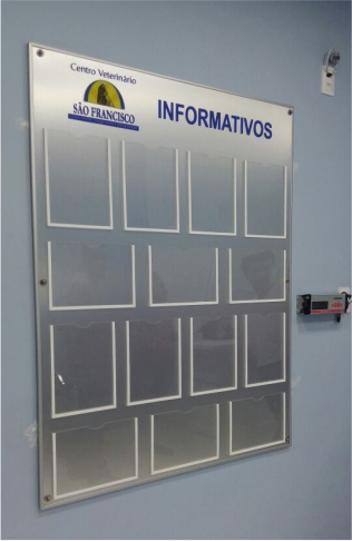 Quadro de Informativo com porta folhas para Clínica Veterinária.