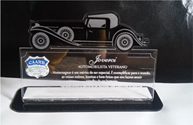 Troféu Carros Antigos em Acrílico com impressão e relevo.