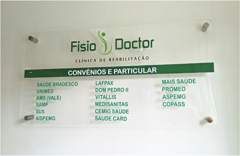 Placa de Convênios para Clínica de Fisioterapia.