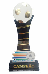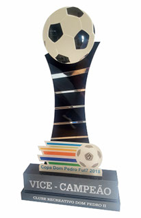 Troféus para Futebol em acrílico, com base caixa. Detalhes impressos e em relevo.