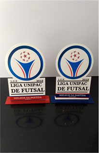 Troféu Futsal em acrílico com detalhes em relevo. Bases caixas