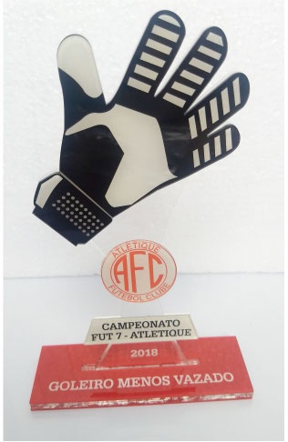 Troféus para Artilheiro e Goleiro em acrílico, com base tripla.