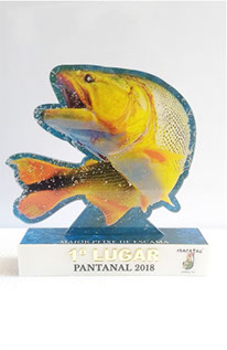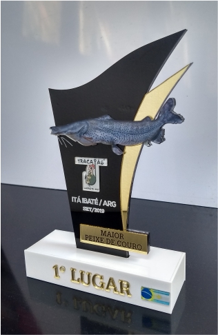 Troféu Pescaria em acrílico com relevo.