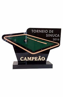 Troféu Sinuca, em acrílico com relevo, base caixa.