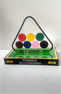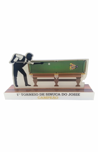 Troféu para Sinuca em acrílico impresso, com base caixa.