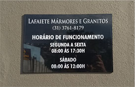 Placa de Horário de Funcionamento, em acrílico preto com gravação a laser.