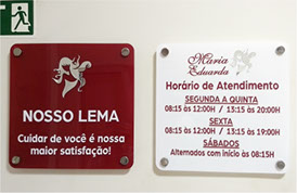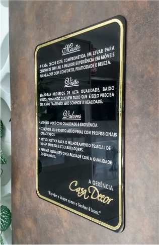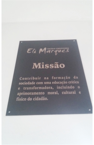 Placa Missão , Visão e Valores, em acrílico com gravação a laser e relevo.