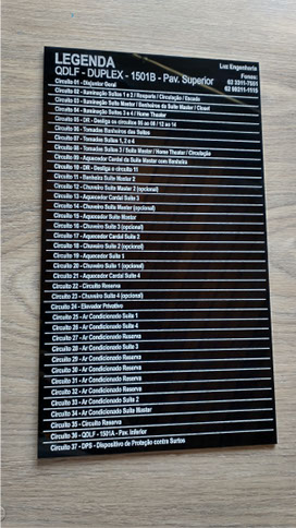 Placa Legenda Painel, em acrilico