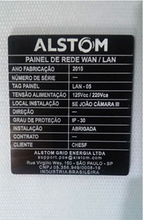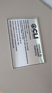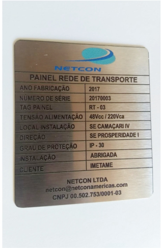 Placa Identificação de Painel, em Aço Escovado com impressão UV.