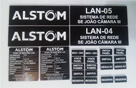 Placas identificadoras de painéis em alumínio e acrilico.