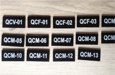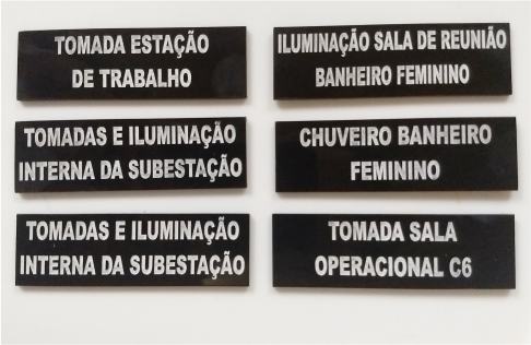 Plaquetas de Painel, em acrílico preto com gravação a laser.