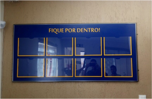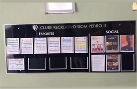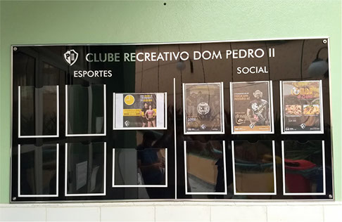 Quadro de Avisos para Clube com porta folhas A4 de acrílico.