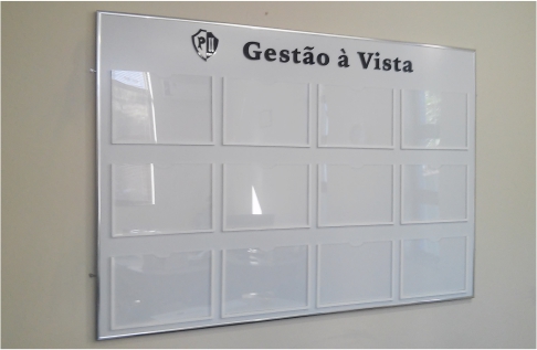 Quadro de Avisos para Pronto Atendimento com porta folhas A4 de acrílico.