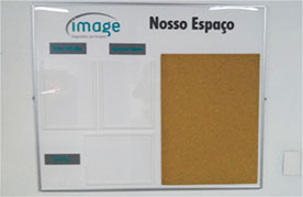 Quadro de Avisos para Clínica com porta folhas e cortiça.